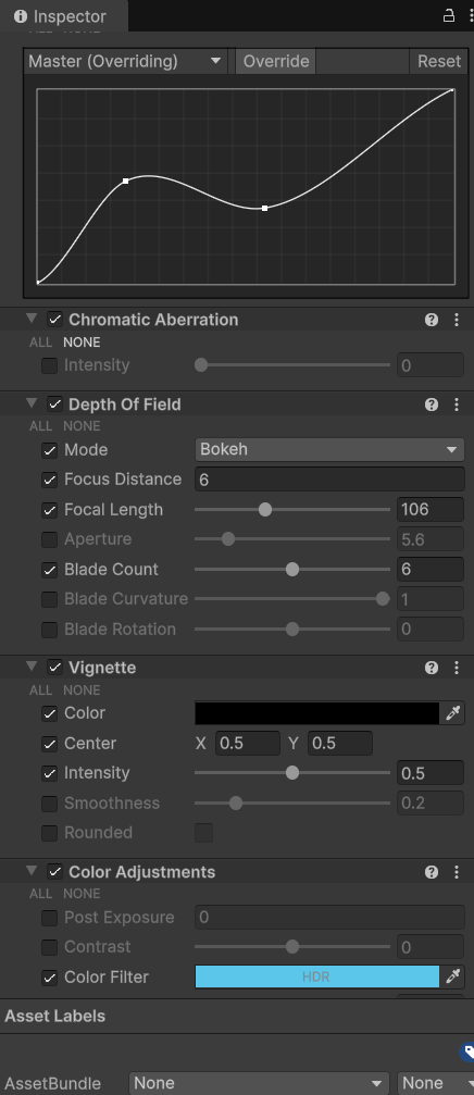 I’ve also learned how to use colour grading and colour curves to enhance the atmosphere of different areas in the game. For example, when the player enters a water zone like in the video I trigger a post‑processing effect that adds a subtle vignette and shifts the colour balance toward blue. This creates a clear visual cue that the player is underwater and helps reinforce the overall mood and immersion.